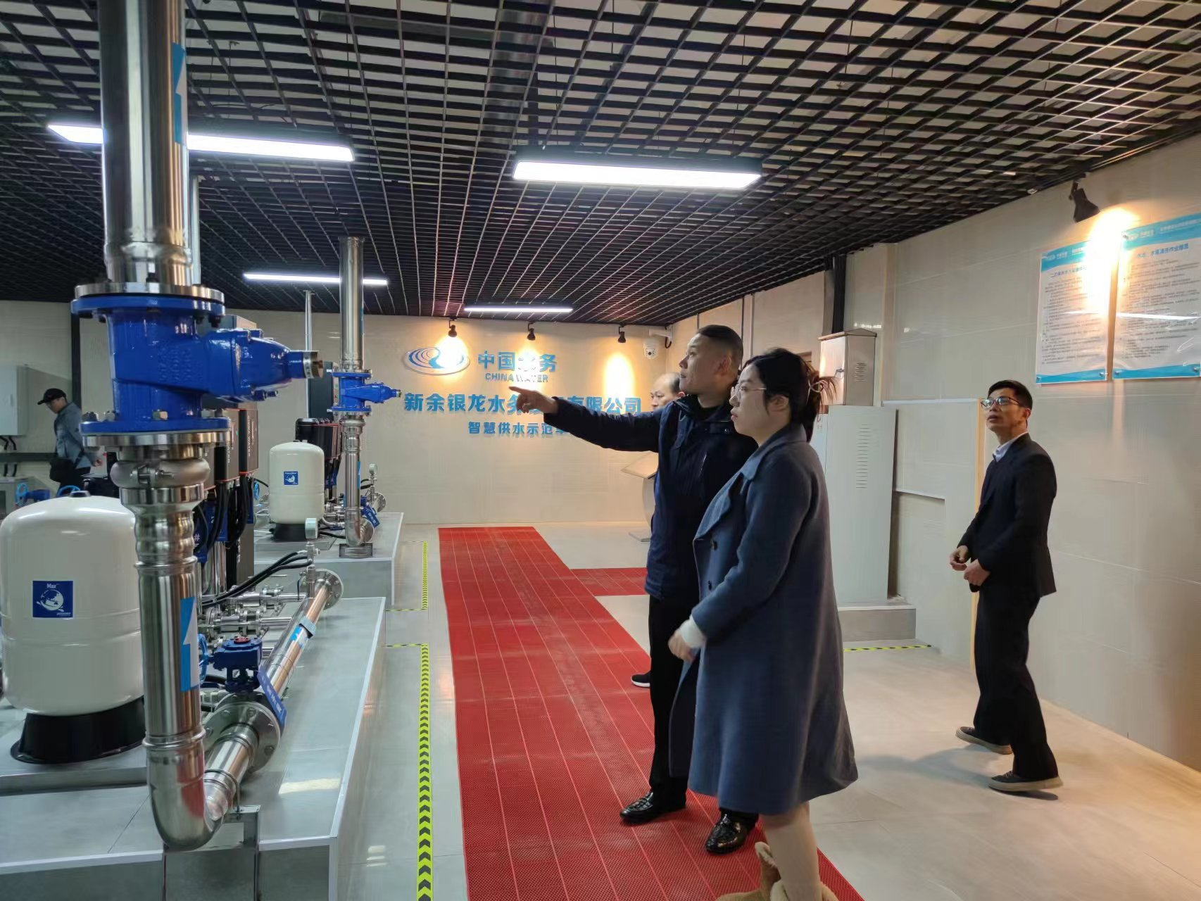 12月27日上午,江西省住房和城鄉(xiāng)建設(shè)廳城建處陳處長(zhǎng)與新余水務(wù)集團(tuán)執(zhí)行總經(jīng)理賈非蒞臨我司參觀,他們此次一同參觀了我司的智慧化水泵房,本次參觀由我司總經(jīng)理陳科宇接待并陪同參觀講解。